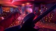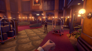After fighting the contestants off, Nick heads into the kitchen and takes the dumbwaiter to the basement of the Hotel. In the basement, he finds that things are not quite as it seems.