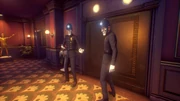 In order to get his amp back, Nick dresses up as a bellboy and distracts the manager. This causes a short memory where Nick says he needs to go to the park, once in the park he finds the deceased Virgil in the arms of a golden Nick Lightbearer statue.