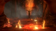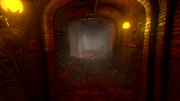 Nick eventually ends up in Hell, with instruments, four body bags hanging and scuffling from the ceiling, and a pile of dead Nick Lookalikes placed behind a cage. The ground has turned into lava, and painful screams can be heard. At the end, there's a small graveyard and church that Nick enters.